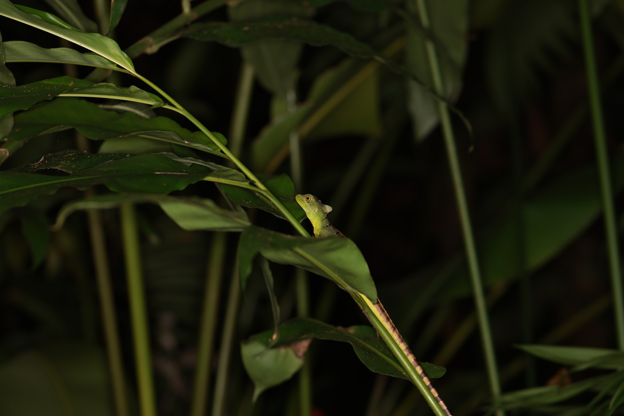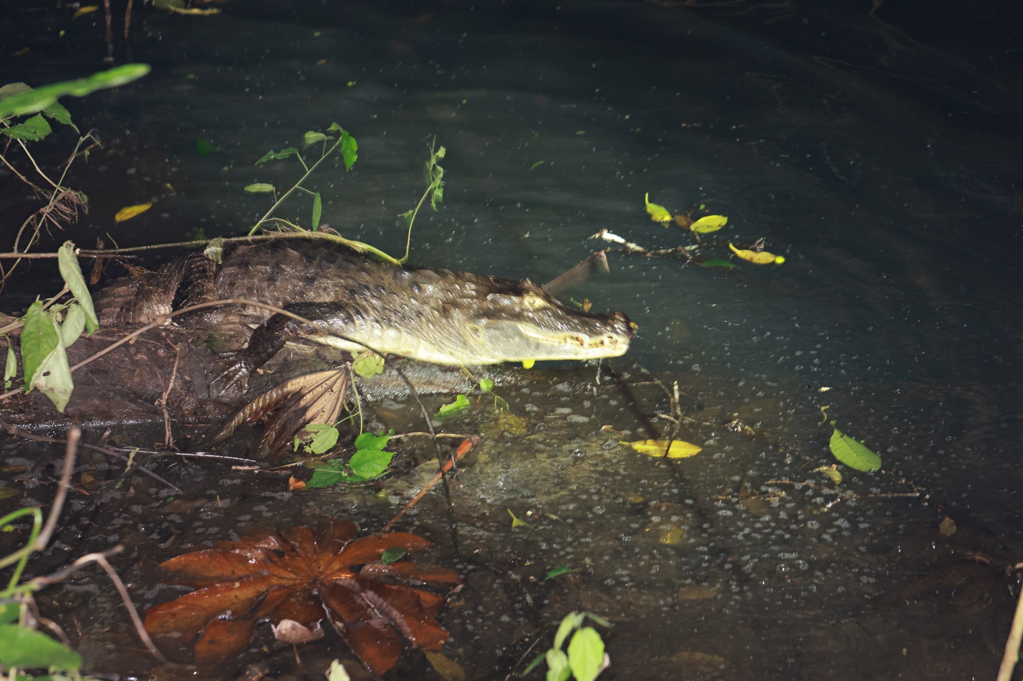 At night, we went on a guided night tour in the private Danaus Reserve. It was very nice! We saw many frogs, some lizards and bats, and also a number of caimans. The largest of them (about 3 meters long) didn’t like my desire to photograph him from a more photogenic range and put on an impressive territorial display of swimming quickly towards us and running up the bank. We were convinced to take a few steps back. After we returned to the apartment, Lilach and I went out for another little tour of our own, by car, and found two large moths that chose the main road as a place to think about the next generation, as well as a large and beautiful gecko that we moved from the road to the vegetation on the side.