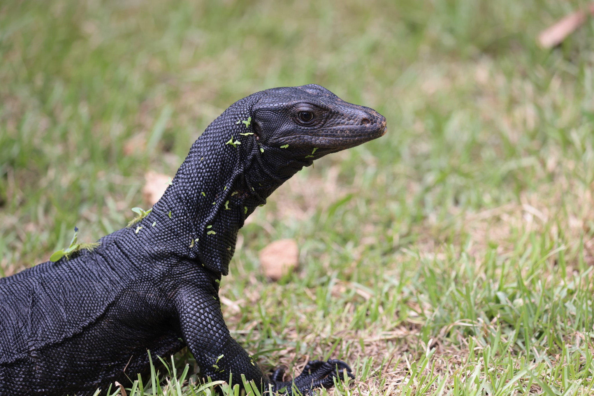 After returning to the beloved German café for lunch (it’s official name, by the way is Panoramika Café), we drove a ~20 kilometers north to a reptile park called Parque Reptilandia. It’s a spacious and very well-maintained park, with a nice selection of snakes, lizards, turtles and some amphibians. Most of the animals are local, but there are some from other countries in the Americas and elsewhere. I was particularly intrigued by a large and completely black monitor which I didn’t readily recognize. Talking to the knowledgeable proprietor later, it turned to be a hyper-melanistic Asian Water Monitor (Varanus salvator):