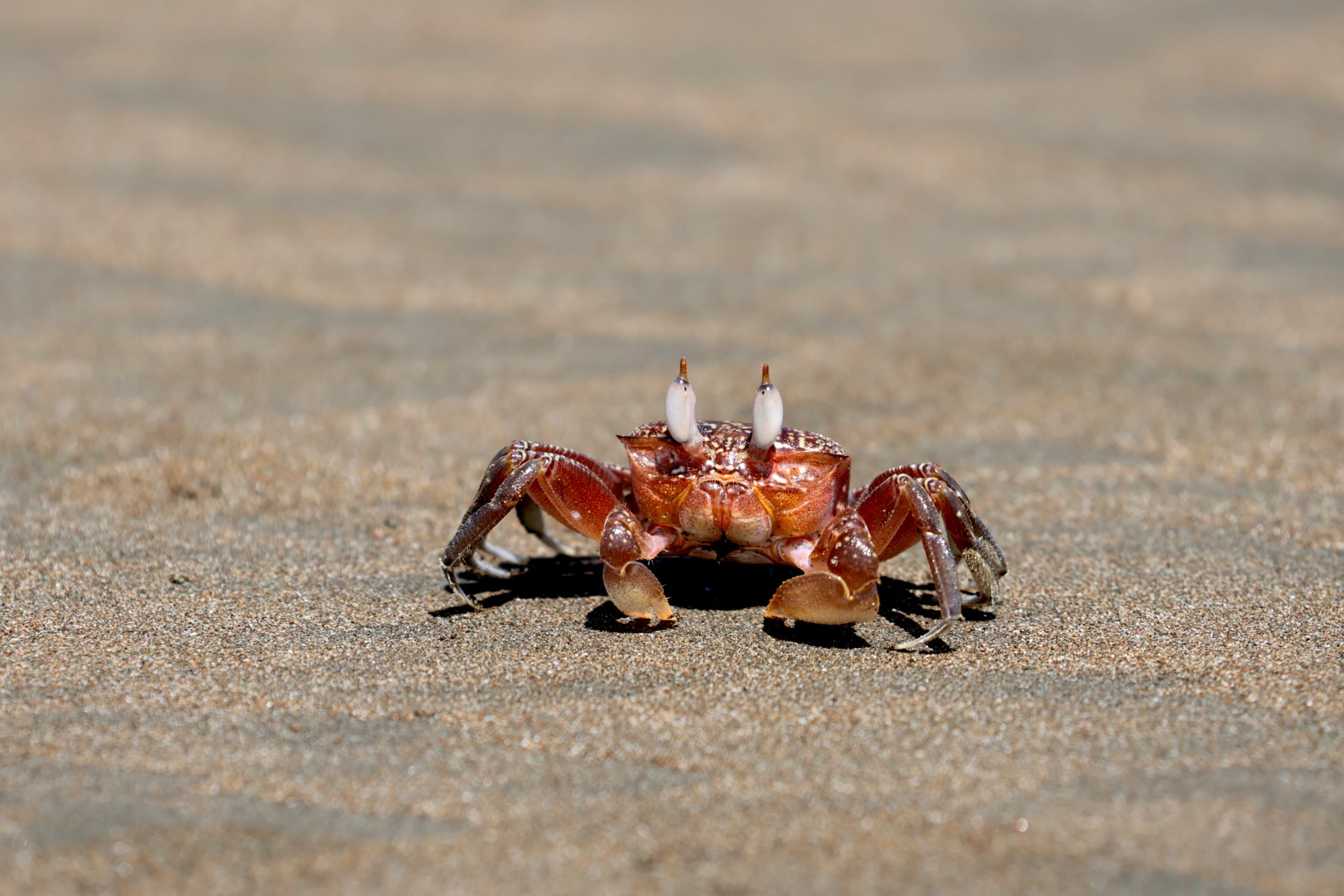 On Saturday morning, we went to “the Whale’s Tail” at Uvita Beach. It is a geological phenomenon called a Tombolo, which we had already seen at Manuel Antonio Park, where opposing currents deposit sand between the beach and a nearby island, creating a narrow strip of sand that connects the two. At Manuel Antonio, this strip had thickened and grown high enough for permanent vegetation like coconut palms and later other types of trees and plants to grow on it. In Uvita, on the other hand, it is still much lower and is only exposed at low tide. From the air, it really looks like a whale’s tail, and on the ground, it’s just nice to walk on. On the way back, we were amused by the sight of reddish crabs running on the wet sand with amazing speed, instantly entering their burrows in the wet sand upon the slightest sense of danger.